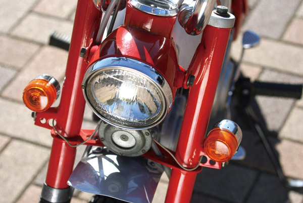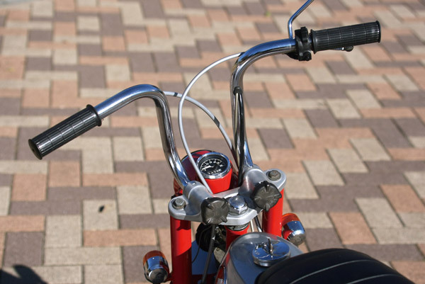 これまでも誌面で4Lと5Lの2台のモンキーをレストアしてきましたが、どちらもベースは相当ボロボロな状態からでした。今回のA型モンキーもいくつかのパーツが欠品していたものの、48年も経っているとは思えぬ状態でした。といってもしっかりと走れるようにゴムや、ベアリング関係は全て新品にしました。外装にはABSやプラパーツが使われていない、昔の車体特有のオールスチール製だったということで、裏側の錆などを落とせば使用することが出来ました。純正、当時の塗装も希少だとは思いましたが、せっかくレストアするならばと考え、フレームからリペイントしました。タンクはあえて純正、当時のままにしたことで、ピッカピカの状態にするのではなく“少しだけ当時のヤレ感”を残してあるのが今回のコダワリ。
