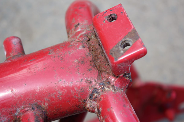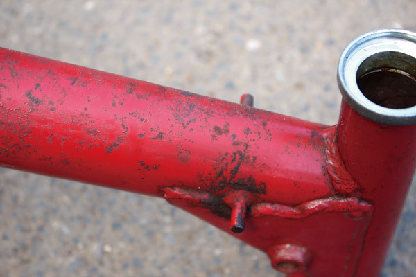 フレームは塗装の剥がれとサビが点在。このまま当時物としても味がありますが、 やはり綺麗にしてあげるのがレストア道たるもの