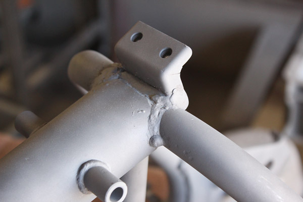 というわけでサンドブラスト終了! なお、ス チールにサンドブラストを当てたまま放置し てしまうと錆びてしまうので、なるべく早め に下地だけでも塗っておくのがベストですよ