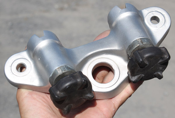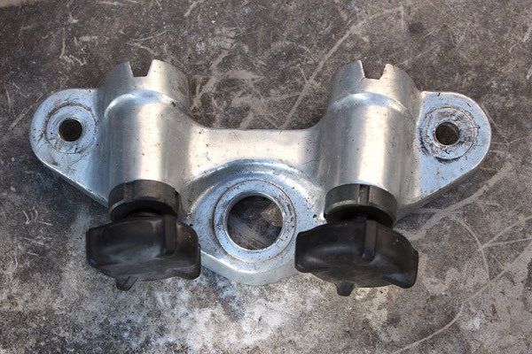 アルミ製トップブ リッジにウエットブラ スト施工するとこんな感じになります (クルクル部分は取り外して施工)。ま るで塗装したかのような仕上がり