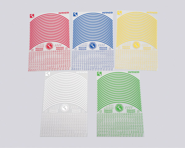 今回貼り付けるリムライン以外にも、KITACOロゴ、アルファベット、数字が用意されており、マシンの各所をドレスアップ出来る。今回は12インチ用を使用しましたが、他に8~10インチも発売中。