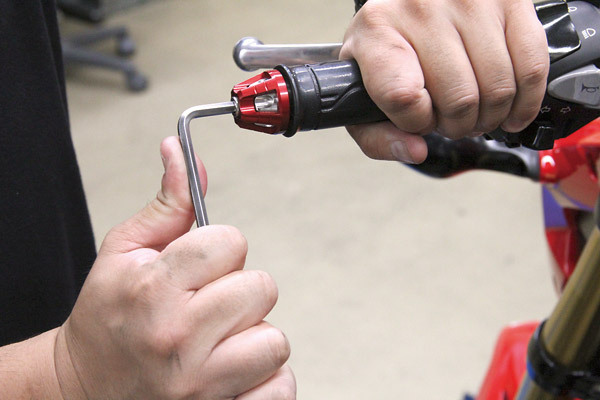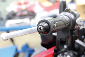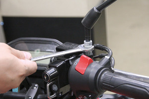純正のバーエンドを留めるボルトがこれまた堅い!! ホントに、とにかく堅い!! 舐めないように注意しましょう。今回はショックドライバーを使って外しました。