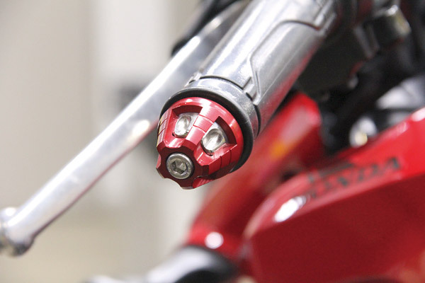 アームの根本にあるフタを外し、車体にまたがりお好みの位置で固定しましょう。アームは12段階で調整可能。純正よりも低く、ボディと同じカラーリングでカスタム度もUP。