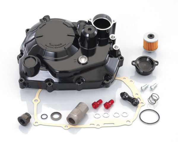 見た目がカッコいいのはもちろん、純正の遠心オイルフィルターが1086gに対し、キタコ製は164g!!!! これだけで約1キロ近くの軽量化、エンジン内部パーツがこれだけ軽くなりゃ~レスポンスも上がる事間違い無しです!!