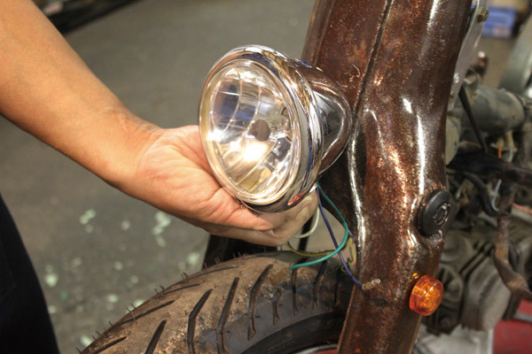 4.5サイズのベーツライトを取り付けることにしました。これはステーを作るというより、フォーク側に穴を開ければ取り付け可能です。