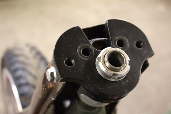 ハンドルポストのピッチは約80mm。バーハンにするならば、この穴にポストを立てればOKです。ネジ山のピッチは1.25。