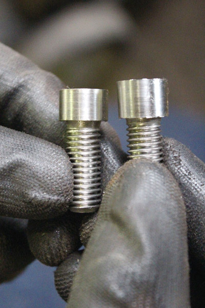 そこでキャップボルトを旋盤で削って頭を細くすることにしました。これで狭い隙間にも入ってくれます!