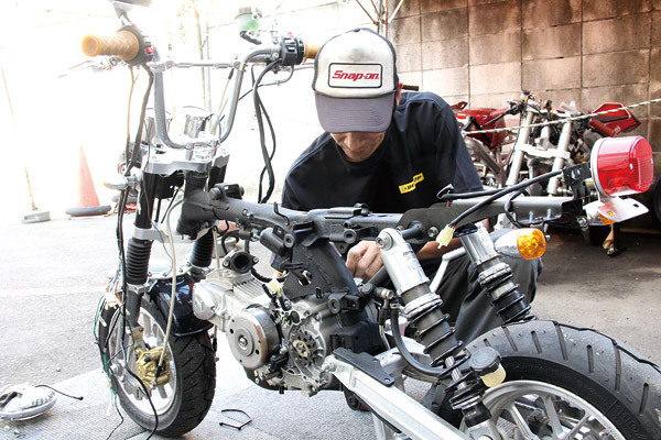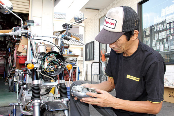 作業はパーツの販売からカスタムマシンの製作、レストア、メンテナンスと何でもおまかせ出来るあかおぎさんにお願い。今ではレアなヨシムラ製マフラーや、結晶塗装仕上げのフレーム、ワンオフのステーなど、あの時は色々と苦労してやってたなぁ~と思い出しました