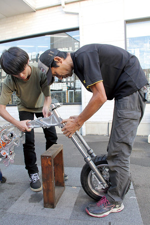 とりあえず外装を載せただけですが、モノショック仕様のZⅡレプリカはどうでしょう? ハンドルも高過ぎたりするので、皆さんのマシンをじ~っくりと分析しカスタムしていきます。どんな形になるかはお楽しみに~!!