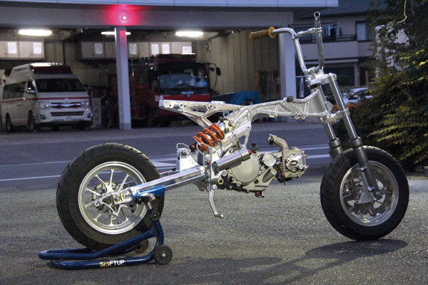 してしまうと見えない骨格だけというマニアックな姿ですが、なにげに好きです。フレームは3cm、スイングアームは2cmと以前の車体よりも数字上で5cm長くなり、かなり大きくなった印象
