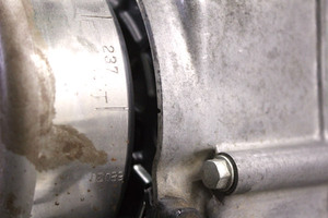 フライホイールを回して上死点を出しておきます。『T』マークをケース側にある切り欠き部分に合わせておきましょう