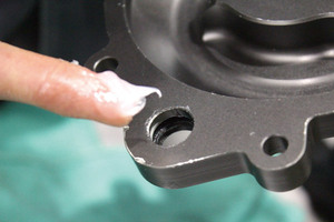 キックシャフトが刺さる部分や内部側のプッシュロッド部分など摺動部分には、組み付け前にシリコンクリスを塗布しておきましょう