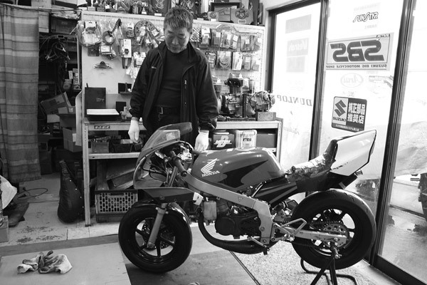 4ミニ大好き! マガジンの本誌ですが、掟破りの逆サソリ状態で2ストのNSR50でレース参戦連載です。浅草の老舗革ジャンメーカー『カドヤ』さんのレクリエーションマシンをセットアップしてレース参戦していきます!