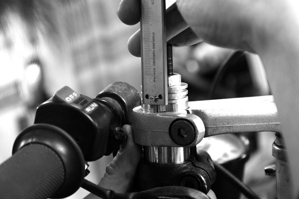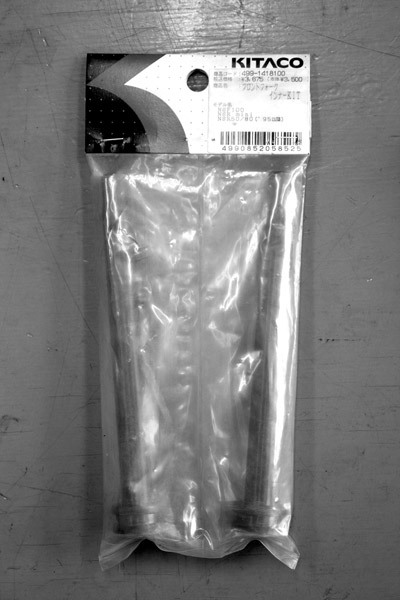 シートパイプのオリフィス孔サイズが変更されているキタコ製フロントフォークインナーKITを入れることで、減衰力強化でハイレベルな走行に対応できるようにします