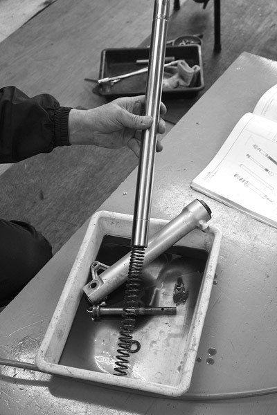 オートボーイ新庄さんに診てもらいました。オイルも相当変えていないであろうフロントフォークからバラしてみることに!