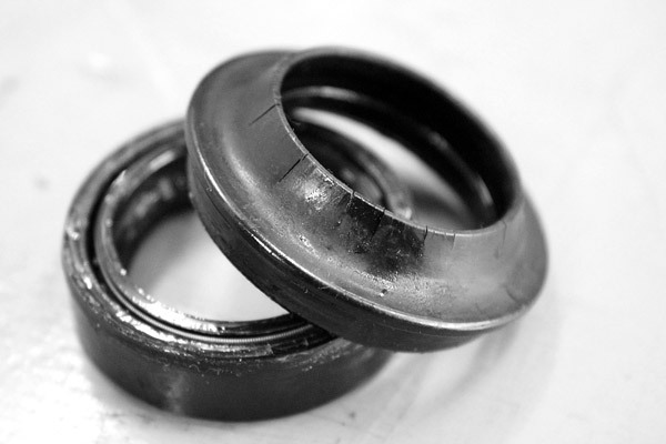 フォークシールとダストシールは新品に交換です。ダストシールは経年劣化でひび割れてました
