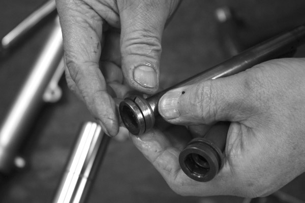 純正のリングを一旦外して、キタコ製フロントフォークインナーKITのシートパイプに組み替えることにしました