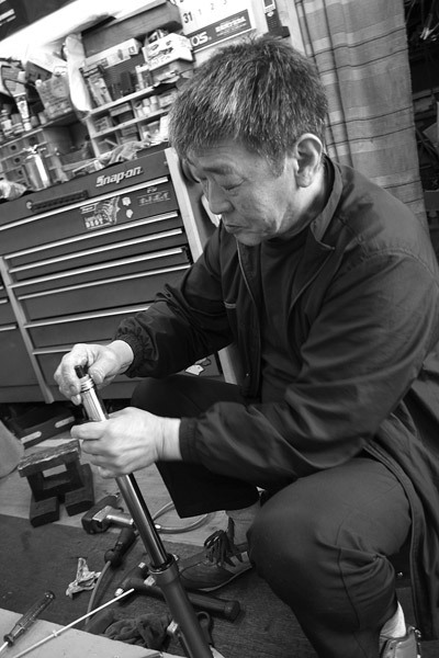 フォークは新庄さんのゴッドハンドによって速攻バラされていきます。オイルは案の定かなり汚れていました