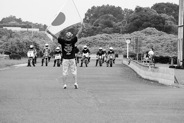 筑波サーキットでのオートボーイさんの『夏祭り』に参加したのもつかの間、岩井サーキット『夏祭り』に参加です。本誌のマシンはセッティングをメインに走らせて頂いたのですが、10代の若者の走りは爽快でした。10代とは言え、ミニバイクを現役で走らせているのだからとにかく皆さん速かった! 何と言っても転倒なしで、この日転んでいたのはスタッフ側のみ…(笑)。