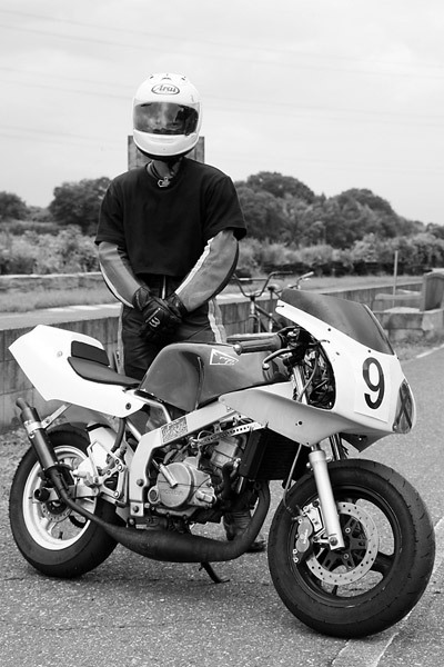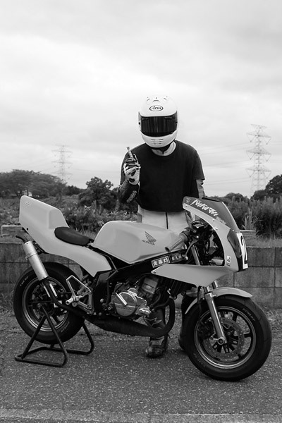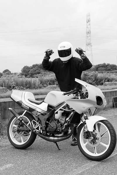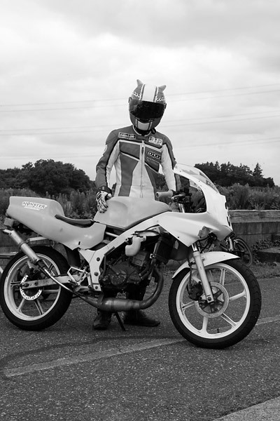4ミニ大好き! マガジンの本誌ですが、掟破りの逆サソリ状態で2ストのNSR50でレース参戦連載です。浅草の老舗革ジャンメーカー『カドヤ』さんのレクリエーションマシンをセットアップしてレース参戦していきます!