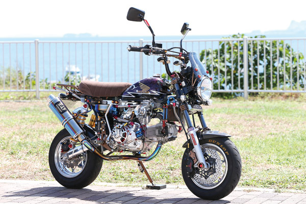 CUSTOM SPEC 124cc/SP武川製スーパーヘッド4V+Rボアアップキット/SP武川製乾式クラッチキット/SP武川製スーパーストリート5速ミッション/OVER製マフラー/ヨシムラ製TMR-MJNΦ32キャブ/NSR Fフォーク流用/オーリンズ製Rショック/Gクラフト製16cmロンスイ/OVER製F 2.5J・R 3.5Jホイール/ソリッドアップ製前後フェンダー/etc.