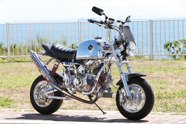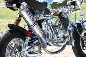 CUSTOM SPEC 106cc/SP武川製ボアアップキット/SP武川製スペシャルクラッチキット/SP武川製5速ミッション/ヨシムラ製マフラー/NSR Fフォーク流用/ビチューボ製Rショック/OVER製16cmロンスイ/etc.