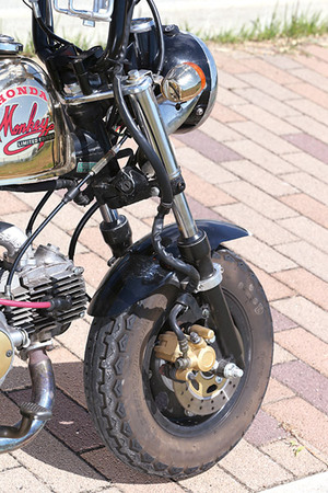 というわけでライトチューンなモンキーですが、排気量は88ccで、フロントブレーキはディスク化済みと、走って止まれる仕様になっていますリミテッドエディションのゴールドタンクが個性を主張していていい感じ♪