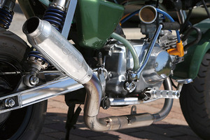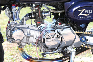 エンジンは武川製のボアアップキットに、同じく武川製のスペシャルクラッチと5速ミッションを組み合わせています。オーナーさんお気入りはこのヨシムラFCR!
