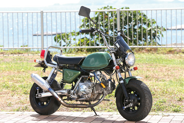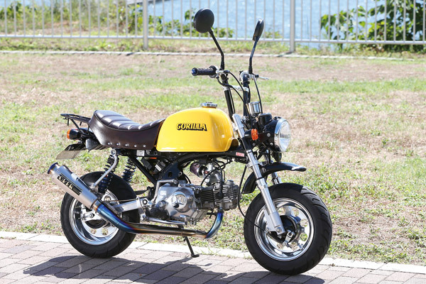 ジュンインターナショナル製のボアアップキットにOVER製のマフラー、PCΦ20キャブなどおさえるところはおさえたゴリラ。とはいえ純正のドラムブレーキではちょっと不安が残るので、次はディスク化を検討中。