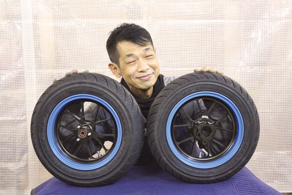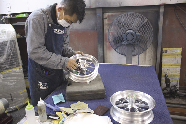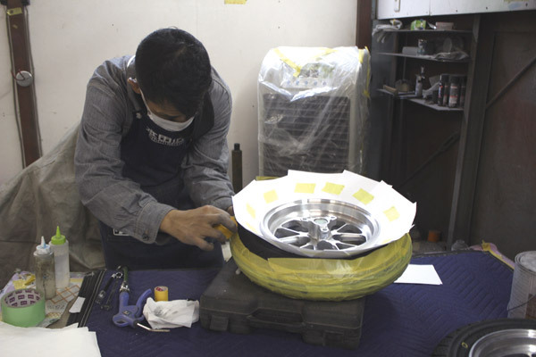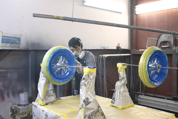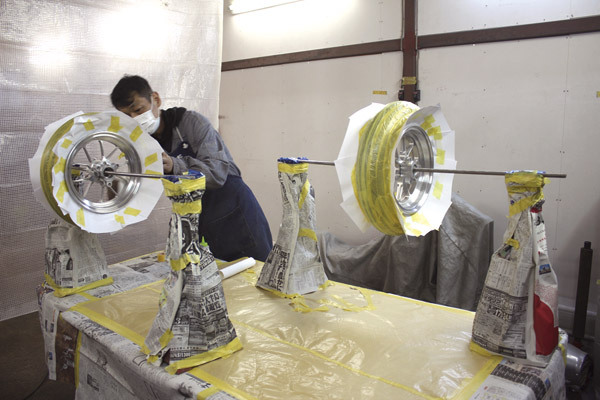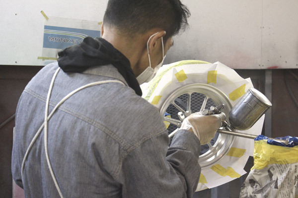 外装のペイントも完成したということで一旦車体を引き上げたのですが、小林さんから「やっぱりホイールも塗りましょう!!」と熱望され、急遽ですがホイールもペイントしちゃいます