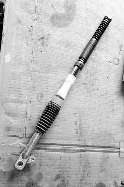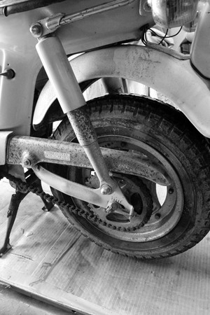 前回からスタートした本企画、今回は足周りをチェックしていきますよ〜。エンジンがかかっても、足周りがダメでは、まともに走ることができませんからね! という訳で車体からフロントホイール、前後サスペンションを外して状態をチェック。ホイールはサビこそ浮いてはいるものの、変形や腐食などはないので問題なし! 現役続行決定です。ブレーキはというと、パネルを開けてビックリめちゃくちゃ綺麗! あかおぎの鈴木さんも驚きの状態でした。前後サスも確認してみましたがとりあえずこのまま使えそう。ちなみに僕のシャリィ、メーター上は走行距離が約1700㎞。譲ってもらった当初は「そんなに少ないわけ無いっしょ!」って感じで信用してなかったのですが、各部を見ていくと、前回のエアクリや今回のブレーキシューなど、その数字が正しいこと裏付ける事実ばかり出てきます(笑)。