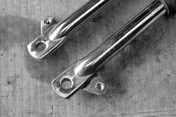 ということで今回チェックしたところでは大きく傷んでいるところがなったので、組み戻す前に気になっていたメッキ部分のサビを落としてピカピカにしました。