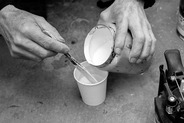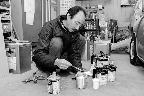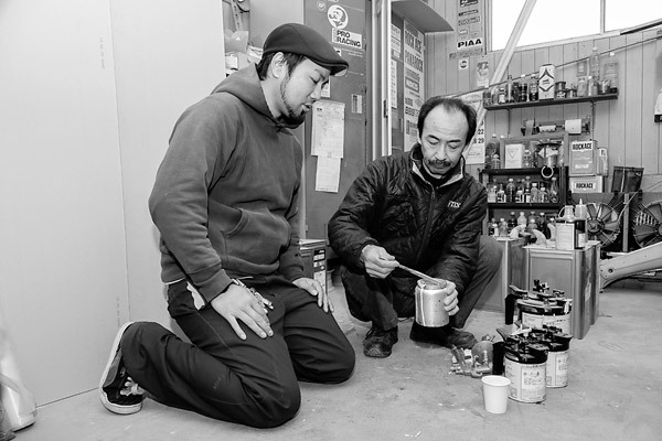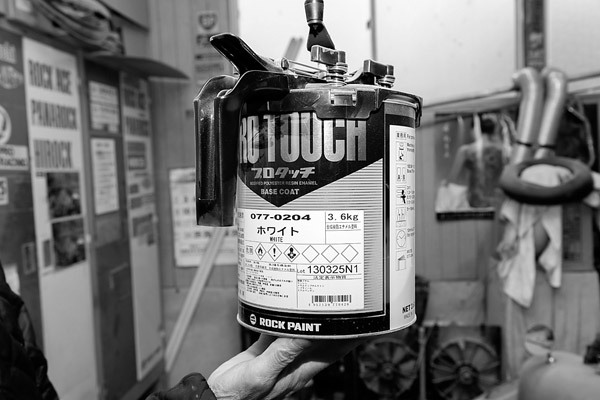 ガレージマイスターの廣瀬さんに、僕のイメージしている色を調色して作ってもらいます