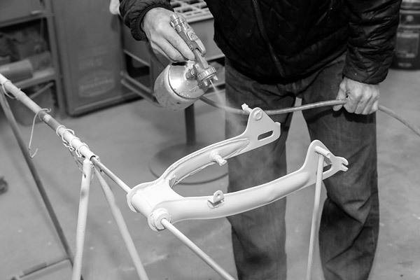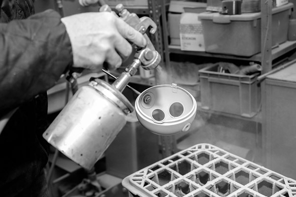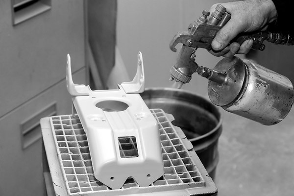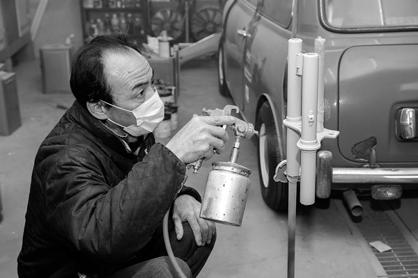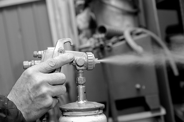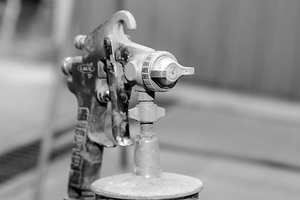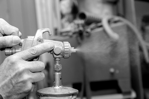 色も完成したので、いよいよペイント開始! 吹き付けるものによってノズルを回し、噴射パターンを変えることで、効率的かつ綺麗にペイントできるのです