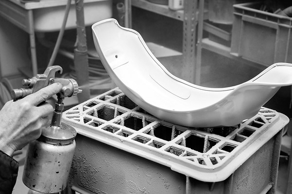 ヘッドライトのような丸いパーツは、平らなものより垂れやすく、ヒーターなどで熱を加えておくことで乾燥時間が短縮できて垂れを防ぎます