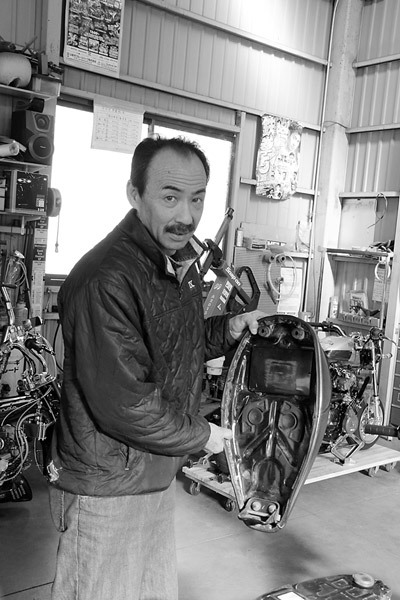 サンドブラストは埼玉県のU2(ユーツー)さんに依頼。ブラストだけではなく、SRなどのカスタムも手掛けていて、バイクに精通しているブラスト屋さんなのです。こちらも作業を開始するとアッという間に塗装が剥がれていきます。U 2 の吉田さんに無理を言ってちょっとやらせてもらいましたが、さすがプロ仕様! とんでもない威力でみるみる塗装が剥がれました! さてさて、次号はいよいよペイント作業を紹介。何色になるのか予想しつつ、次号発売をお待ちください!!