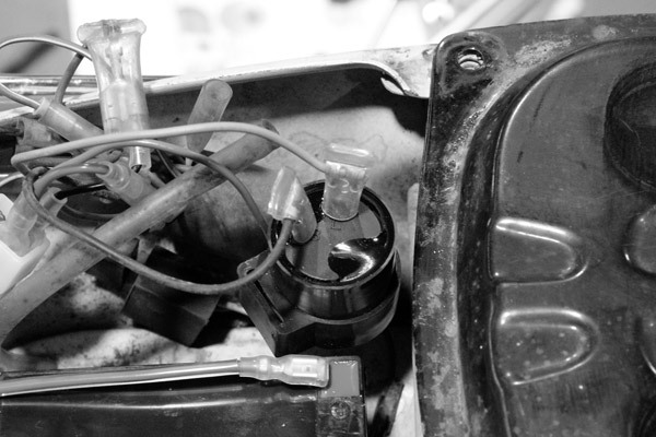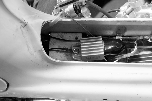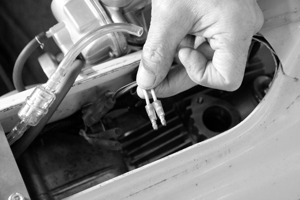 シャリィは車体の最後部にバッテリーがあるので、レギュレーターの配線が届きませんでした。そこでタンクの下を通しつつ、配線を延長して繋ぐことで解決
