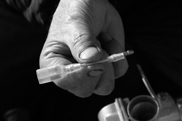 前回付けた負圧ポンプも一旦外し、キットに同梱されていたレギュレーターを取り付けます。今回は車体にΦ8の穴を開け、キットのアース線と共にボルトで留めました