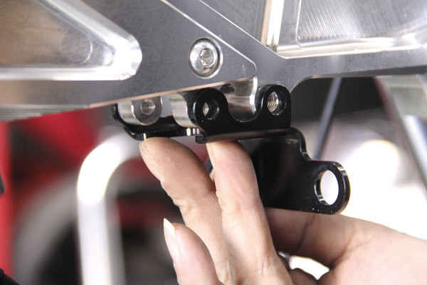 今回用意したステーはアールズのオイルクーラー用ということで写真のように穴位置が合いませんが、オイルクーラー側を長穴にすればいけそうですね