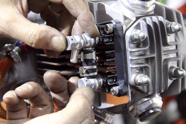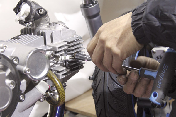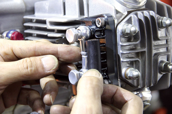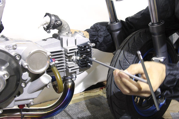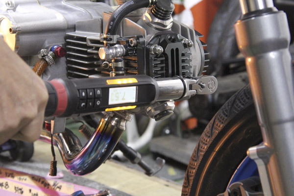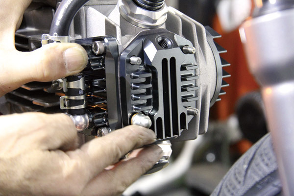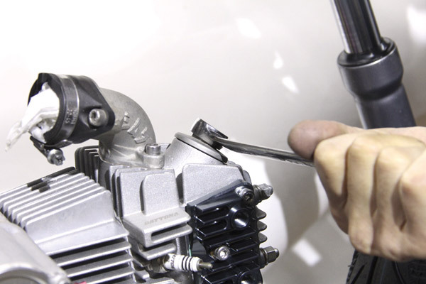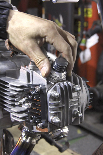 タペットカバーにはオイルシャワー機能付き!! ヘッド上部からカムにオイルが潤滑されるという優れものなのです。如何にもカスタムしてるぜ!! という見た目もGOOD