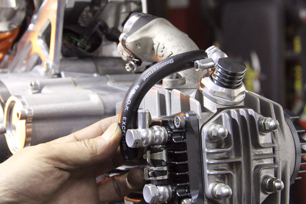 サイドカバーとタペットカバーのオイルラインを繋げ、更にヘッドカバーを取り付けていきます。まだノーマルカバーを使っているという方は是非!!
