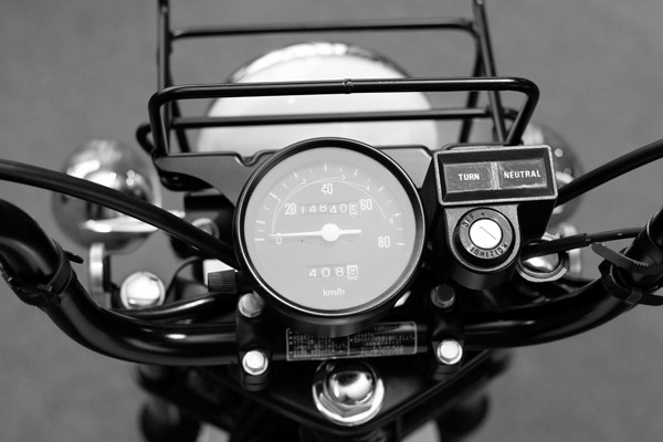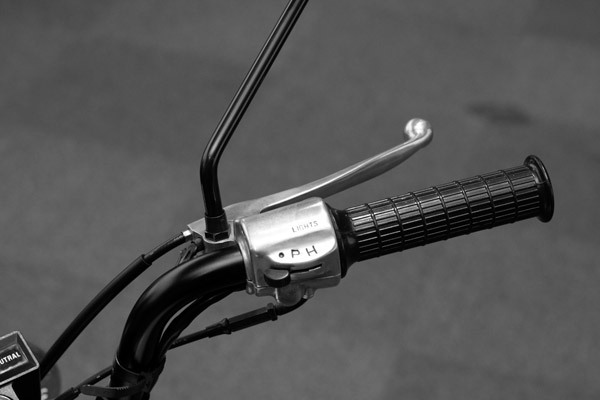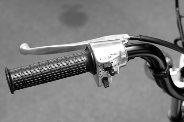 前で紹介した2台と比較してもらえれば分かるだろうが、少しずづだが変化、進化していくスイッチBOX。この時代のホンダの写真、車体は右のミラーしか装着されていないのも特徴