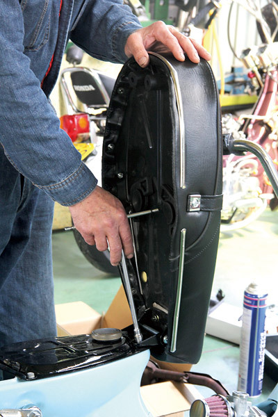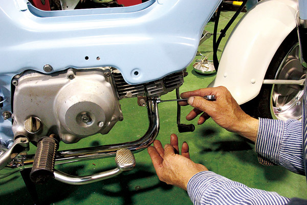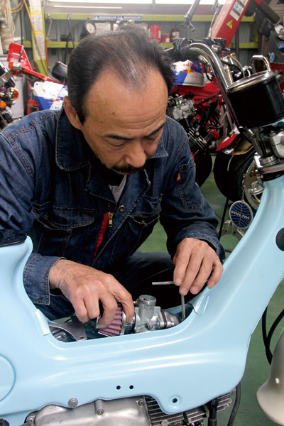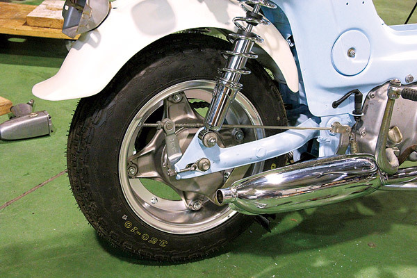 純正のスタイルを残したかったので、初期型と同形状のマフラーをセレクト。なおこちらのマフラーは、バッフルを抜けば90ccまで対応します