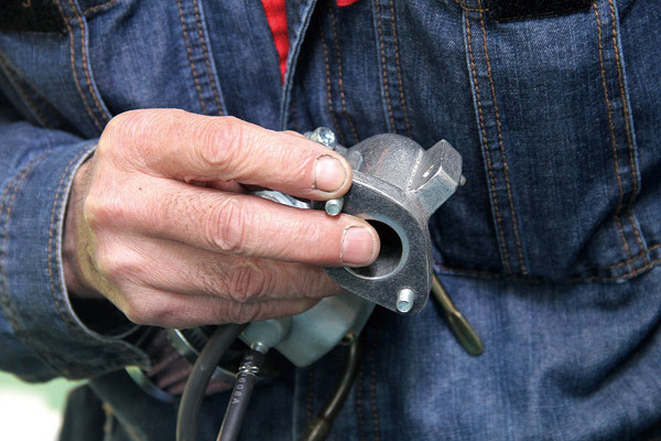 マフラーを装着したらキャブレターを取り付けます。ですがシャリィはそのフレームの形状から、スペースに限りがあるため手が入りにくいんです。なので上の写真にあるように予めボルトをマニホールドに通しておくことで、作業がしやすくなりますよ♪