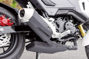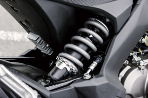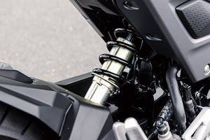 両車ともモノショックではあるが、レイアウトが異なりGROMは車体の真ん中、Zは右寄りにセットされる。またZのリアショックは純正ながらもプリロードの調整が可能となっている