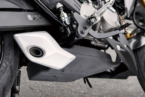 下におさめられたマフラー。四角い箱のようなものは触媒で、