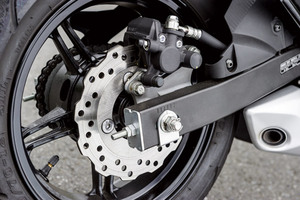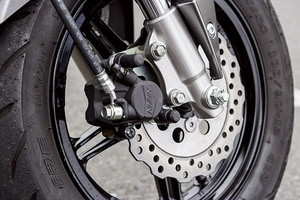 在感を主張している。ブレーキローターは前後ともに真円でΦ220とΦ190となっている