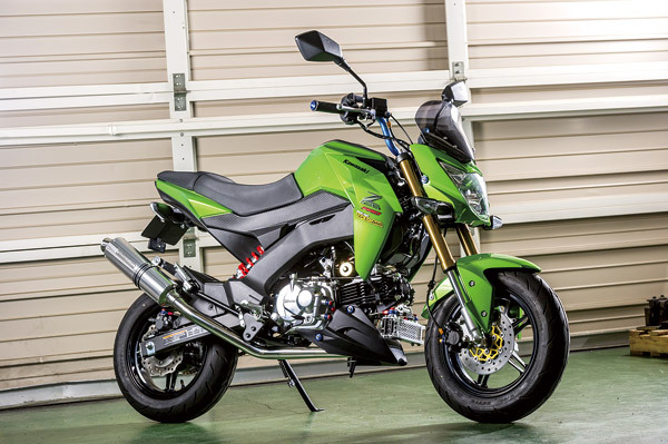 ここからは人気&有名パーツメーカーが作り上げた、最新カスタムマシンを紹介。最初は4ミニユーザーでその名を知らない人はいないと言っても過言ではない、スペシャルパーツ武川が製作したGROMとZ125 PRO。