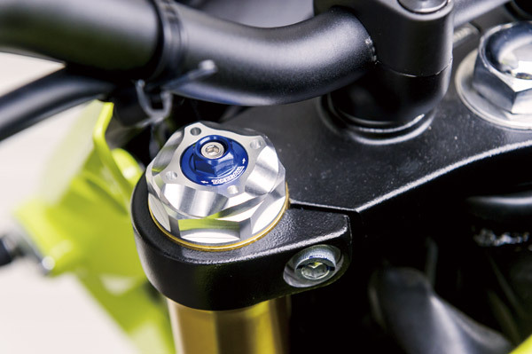 ドレスアップパーツとして、フロントフォークトップボルト(¥5,800/税抜)をリリース。留め方が違うため旧型用は使用不可