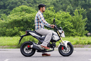 オフロードバイクのシュラウドのようなカウル類に、異径のヘッドライトと基本的な方向性は、世界的にも人気のスタイリング。シュラウド部分の凹み具合、シート高が違うことから、体格によってはニーグリップのしやすさに差がでるかもしれない。ホイール径は同じ12インチだが幅、タイヤの銘柄は異なり、乗った感じはGROMの方が固い印象。逆にZはゴツゴツ感が少なく、通常の街乗りでは不安を感じる場面は少なさそうだ。